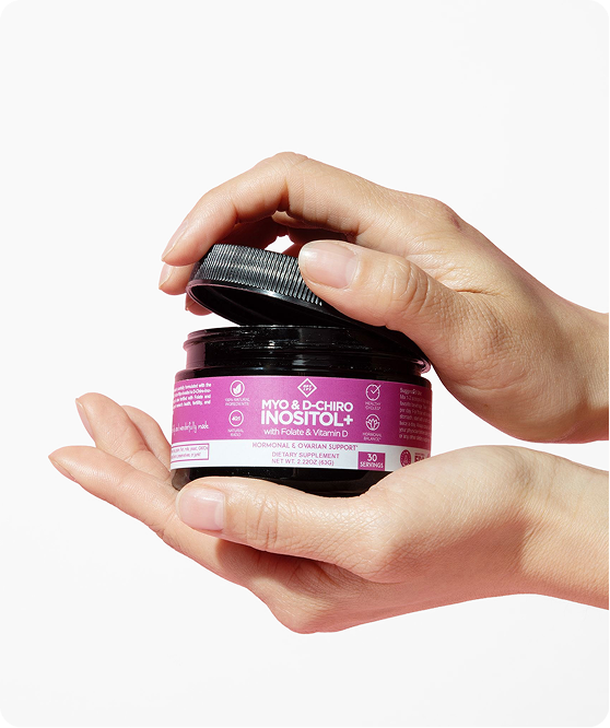 Inositol+ is a clinically studied formula designed to promote menstrual regularity, emotional well-being and overall hormonal health. It features the same balance of Myo-Inositol to D-Chiro Inositol found in healthy ovaries. We also added Folate and Vitamin D to support reproductive wellness, mood and cellular function.