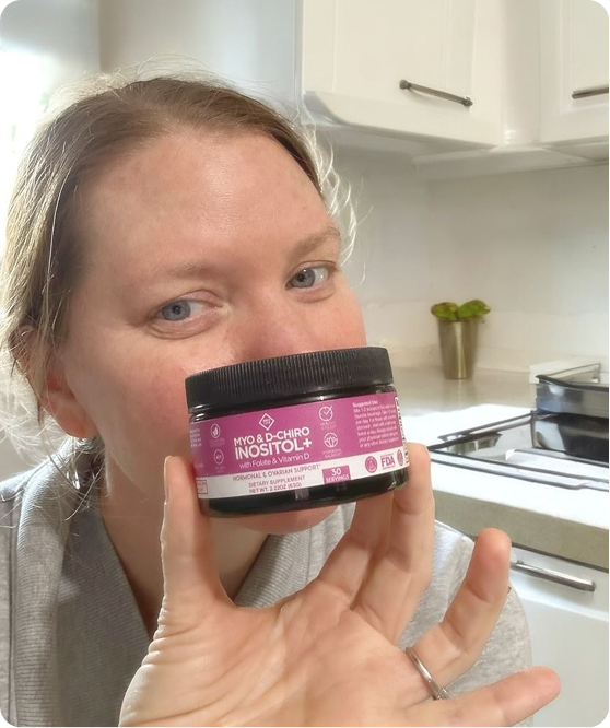 Optify Myo-Inositol & D-Chiro Inositol+ is a supplement I recommend for women who have trouble getting pregnant or have irregular periods, especially if they also have symptoms like extra facial or body hair, stubborn acne, or trouble keeping a healthy weight.