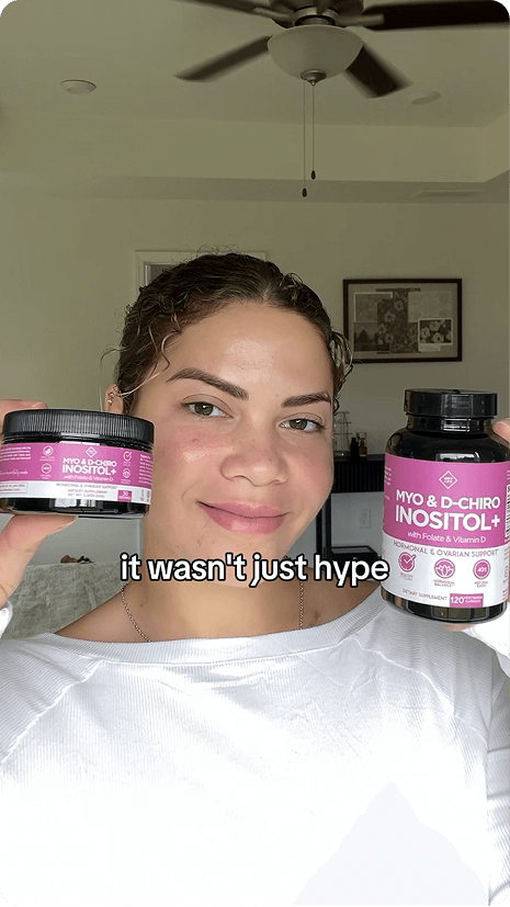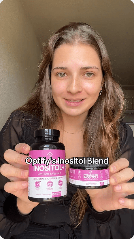 Optify Myo-Inositol & D-Chiro Inositol+ is a supplement I recommend for women who have trouble getting pregnant or have irregular periods, especially if they also have symptoms like extra facial or body hair, stubborn acne, or trouble keeping a healthy weight.